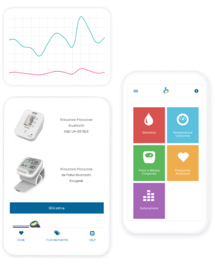 Scopri i dispositivi per il rilievo automatico di: pressione sanguigna, glicemia, temperatura corporea, peso e BMI e saturazione.